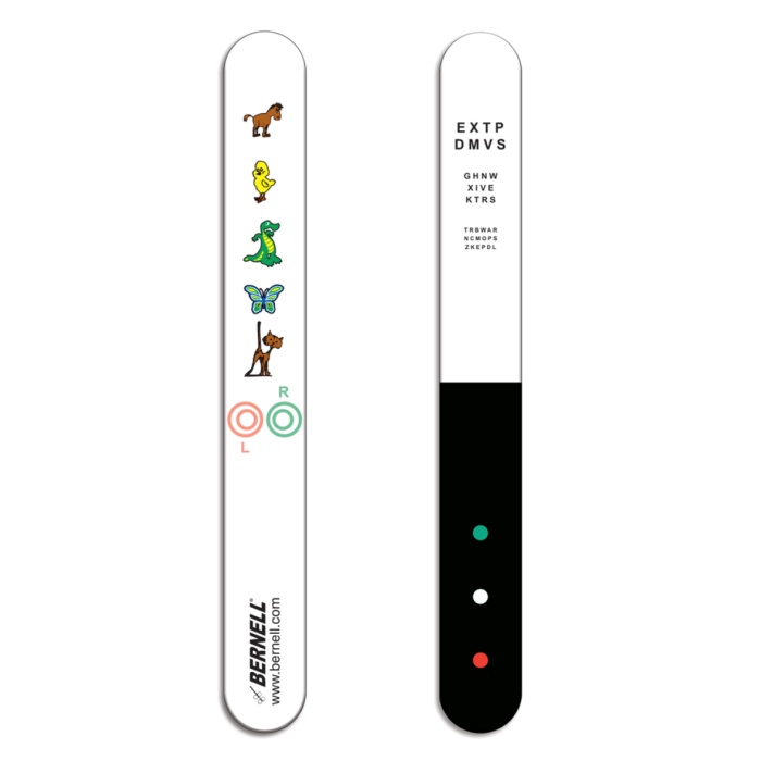 Diese Fixationsleiste ist ein praktisches Hilfsmittel für die Arbeit mit Kindern. Zwei verschiedene Rot-Grün- Ausblendungstests wurden zu anderen bunten Fixationsbildern auf der Leiste hinzugefügt. Beidseitig bedruckt.
