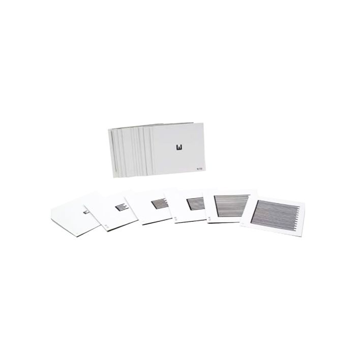 Spezialer E-Haken-Nähetest nach Thibaudet, zur Bestimmung der Sehschärfe bei Simulanten. Die E-Figuren haben neben verschiedenen Formaten auch abweichende Formen.
