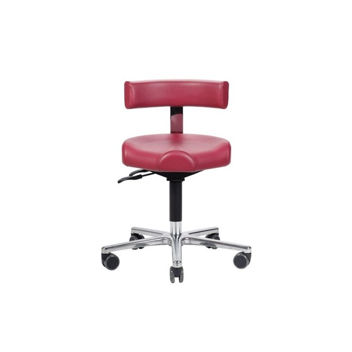 Der Hocker ist mit strapazierfähigem, flexiblem und hygienischem Stamskin-Material bezogen.