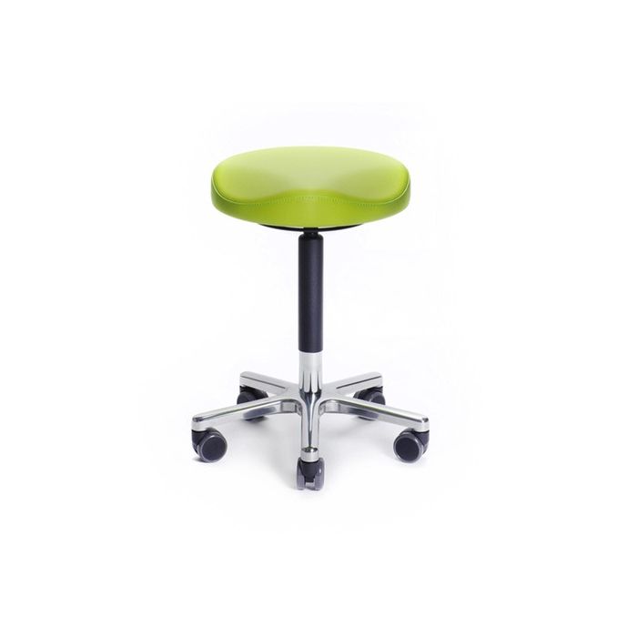 Der Hocker ist mit strapazierfähigem, flexiblem und hygienischem Stamskin-Material bezogen.