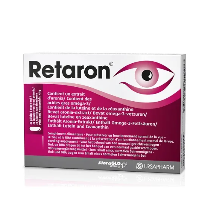 Veränderungen in den Augen entstehen hauptsächlich mit zunehmendem Alter. Retaron® besteht aus Fruchtextrakten von Aronia (Aronia melanocarpa), Spurenelementen, Zink und Selen, makulären Pigmenten Lutein und Zeaxanthin, Vitamin C und E sowie essentiellen Omega-3-Fettsäuren DHA und EPA. Eine Einnahme von 1 Kapsel Retaron® pro Tag ist ausreichend. Das in Retaron® enthaltene Zink und die Omega-3-Fettsäuren DHA helfen, die Sehschärfe zu erhalten.