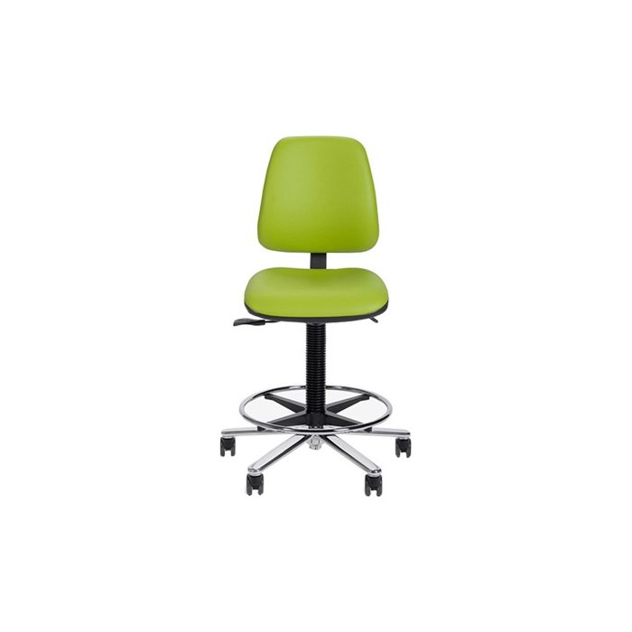 Universell einsetzbarer Arbeitsstuhl mit bequemem Sitz und Rückenlehne. Sitz und Rückenlehne sind für optimale Unterstützung nach Wunsch verstellbar. Das Fußkreuz besteht aus poliertem Aluminium und ist mit großen Rollen mit weicher Lauffläche ausgestattet.