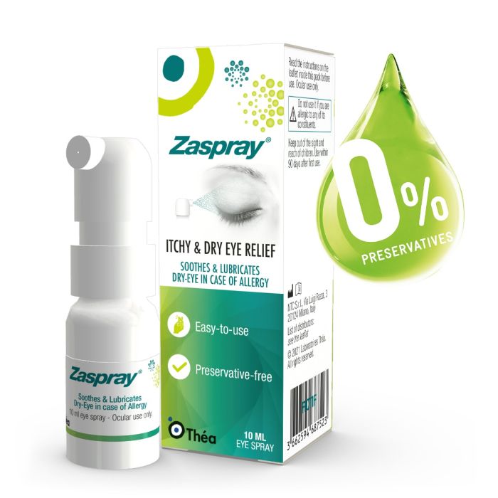 Zaspray wird bei Augenbeschwerden wie juckenden, geröteten, gereizten und trockenen Augen empfohlen, insbesondere bei Allergien (z. B. Heuschnupfen oder Hausstaubmilben).